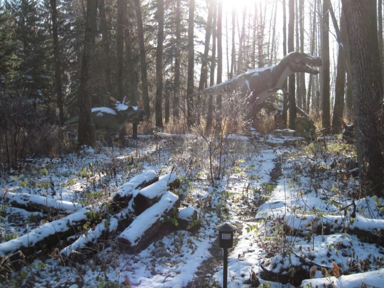 Gigantic, life-sized and startlingly realistic dinosaurs live and breathe in Jurassic Forest…Jurassic Forest is set in an old growth forest. The park has been designed to minimize the impact on the forest and utilize the natural setting to enhance the display of our dinosaurs and to provide an opportunity for you to experience and learn about some of the flora and fauna indigenous to the Edmonton area.”