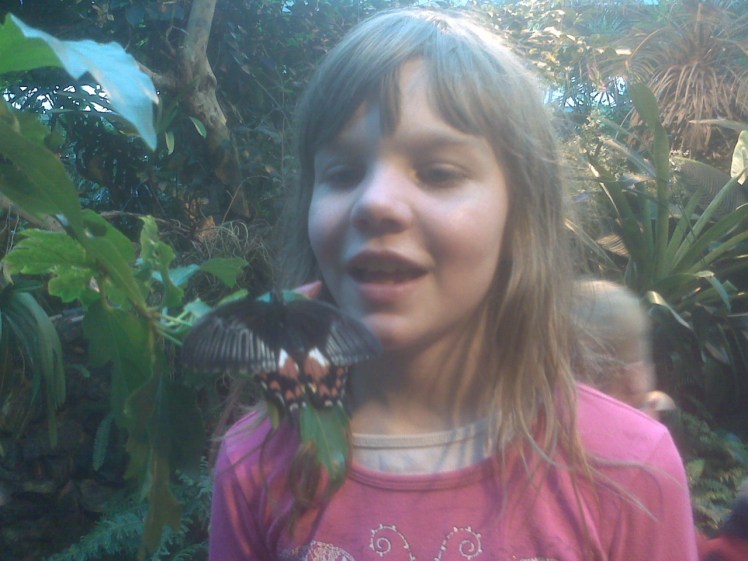 Posted on March 31, 2011July 4, 2015 by Karen Unland Elizabeth admires one of the inhabitants of the Victoria Butterfly Gardens. Share this: Click to share on X (Opens in new window) X Click to share on Facebook (Opens in new window) Facebook Click to share on Tumblr (Opens in new window) Tumblr Click to share on LinkedIn (Opens in new window) LinkedIn Like Loading... Related