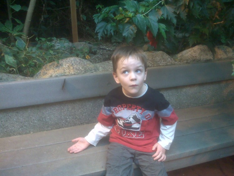 Anticipation. This is my boy, trying to get a butterfly to land on him. Sitting still is hard for him. Very hard. I don’t think this attempt was successful, but he did manage to get one later on in that visit to the Victoria Butterfly Gardens, during spring break.