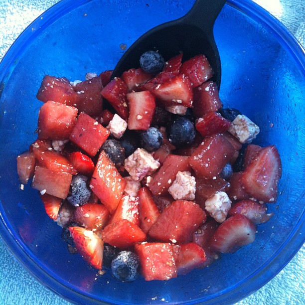 Posted on May 9, 2012July 4, 2015 by Karen Unland Watermelon + strawberries + blueberries + feta + vinegar + oil = yum (Taken with instagram) Share this: Click to share on X (Opens in new window) X Click to share on Facebook (Opens in new window) Facebook Click to share on Tumblr (Opens in new window) Tumblr Click to share on LinkedIn (Opens in new window) LinkedIn Like Loading... Related